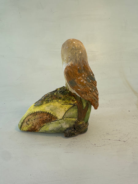 Barn owl on summer hill