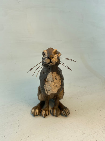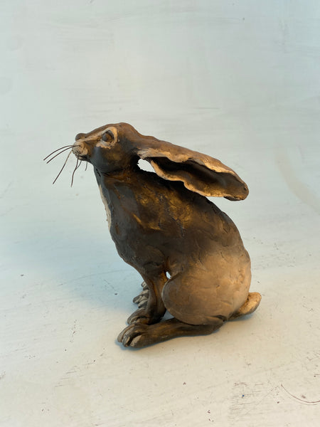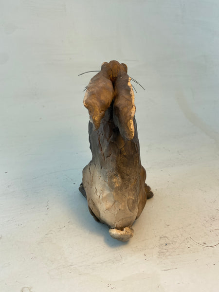 14 cm x 16 cm moon gazing hare smoke fired and polished finish