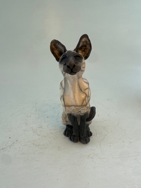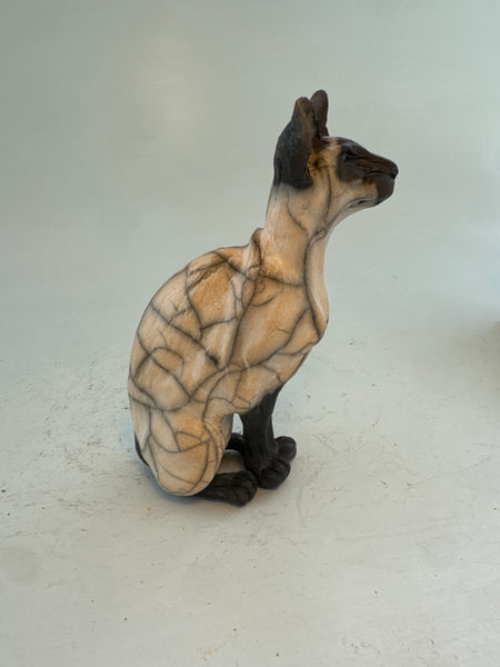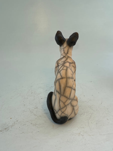 17 cm x 10 cm raku fired crackle glaze Siamese