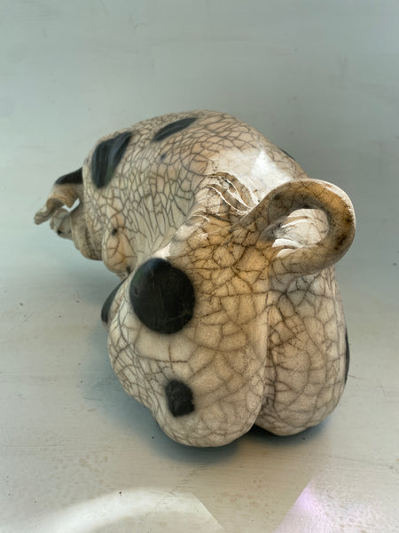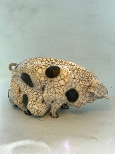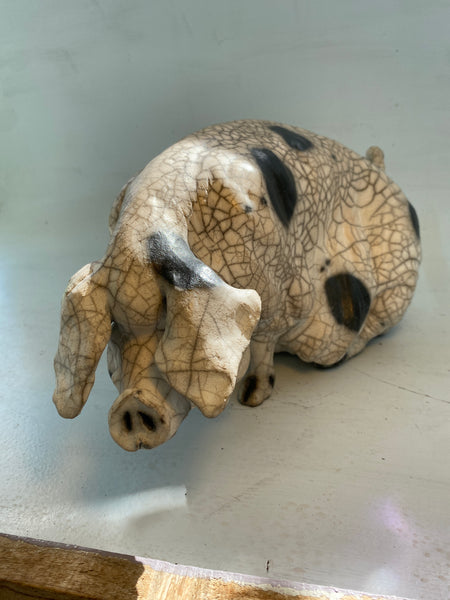 39 cm x 20 cm sow. Beautiful example of raku fired crackle glaze.